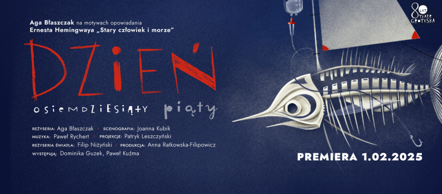 Już 1 lutego w Teatrze Groteska odbędzie się premiera spektaklu Agi Błaszczak „Dzień osiemdziesiąty piąty”. To kameralna, pełna emocji adaptacja inspirowana „Starym człowiekiem i morzem” Ernesta Hemingwaya, opowiadająca o walce człowieka z nieuchronnością losu i akceptacji upływającego czasu.
