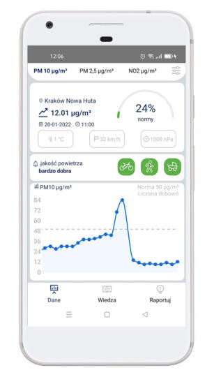W aplikacji jest również baza wiedzy, informacje o zanieczyszczeniach i prowadzonych przez miasto Kraków działaniach w walce ze smogiem.