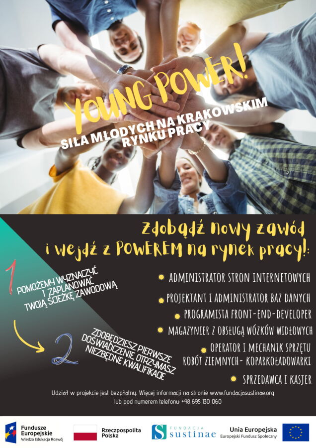Więcej informacji o proj. „Young POWER. Siła młodych na krakowskim rynku pracy” na stronie www.fundacjasustinae.org lub na Instagramie https://www.instagram.com/fundacjasustinae/