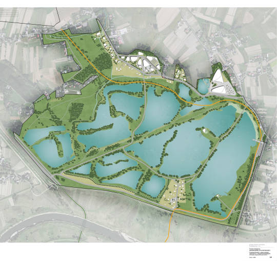 Koncepcja funkcjonalno-przestrzenna zakłada minimalną ingerencję w naturalne ukształtowanie terenu i roślinność. Istniejąca zieleń będzie rewitalizowana poprzez dodatkowe nasadzenia, zbiorniki wodne zostaną oczyszczone, a ich linie brzegowe – uregulowane. Rozległe plaże piaszczysto-trawiaste wokół akwenów mają być zachowane i uporządkowane.