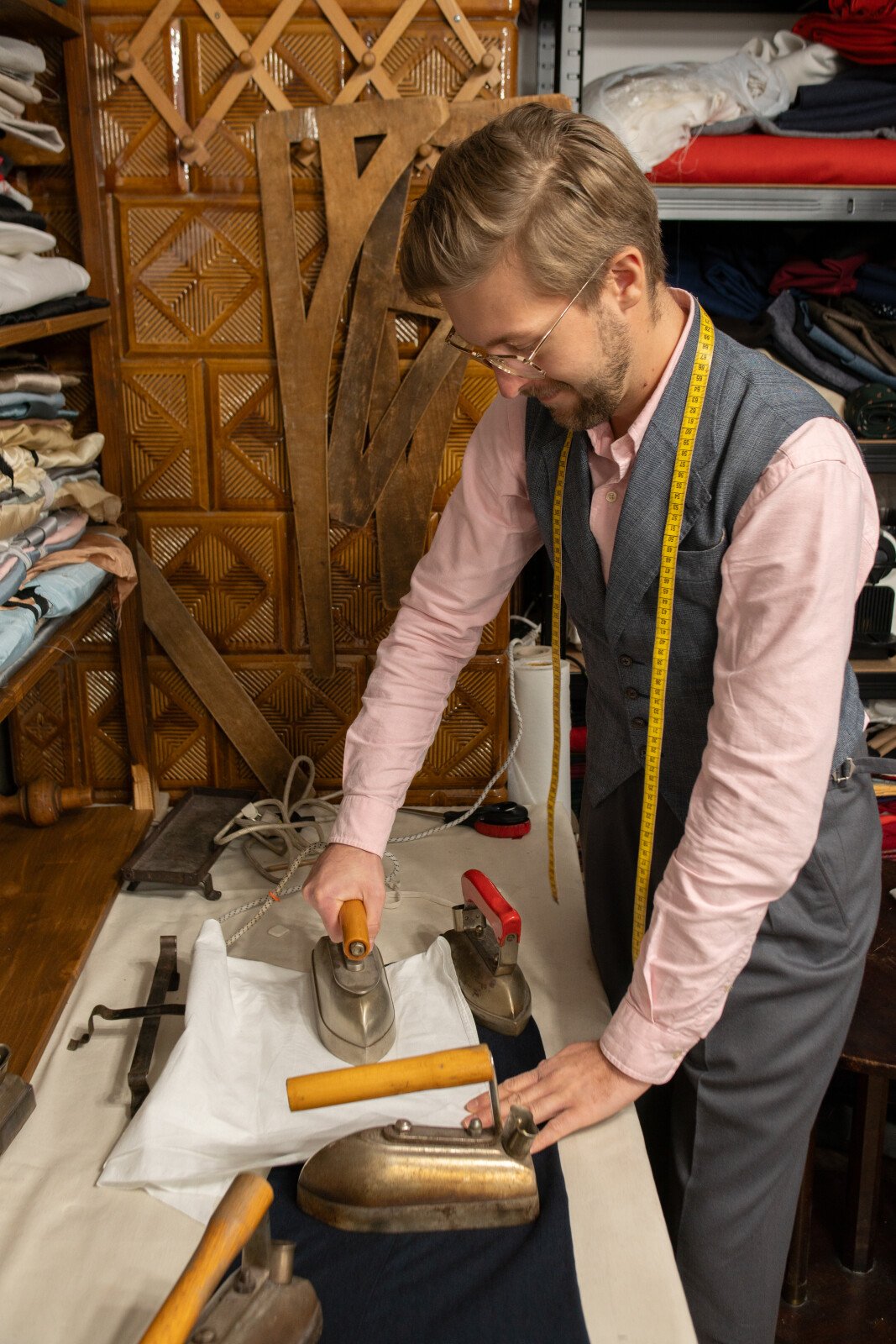 Pracownia krawiecka przy ul. św. Gertrudy 8 działa od ponad 50 lat. Jej historia sięga jednak dużo głębiej. Obecną pracownię założył mistrz krawiectwa Andrzej Kucia, kontynuując rodzinne tradycje po swoim ojcu, który otworzył firmę w 1922 roku. Zakład najpierw mieścił się przy ul. Szewskiej, potem przy Szpitalnej. Andrzej Kucia to krawiec z ogromnym doświadczeniem, którego przez lata odwiedzało wiele znanych krakowskich osobistości. Zawsze wychodziły z perfekcyjnie uszytymi garniturami. Wśród nich wymienić można m.in. Czesława Miłosza oraz Andrzeja Mleczkę. Obecnie pracownię prowadzi Adam Krzepkowski. Nieprzerwanie specjalizuje się w szyciu garniturów dla mężczyzn i kobiet zgodnie z tradycyjną sztuką krawiecką. Zakład nie używa klejonych wkładów. Dobry garnitur jest zawsze szyty na płótnie, które nadaje sylwetce pożądany kształt. Wymaga to wielu godzin ręcznej pracy, ale efekt jest nie do zastąpienia przy drodze na skróty. Krój każdego ubrania jest tworzony zawsze ręcznie, na papierze, potem przenoszony jest na tkaninę. Są to techniki wypracowywane przez mistrzów krawieckich przez setki lat, nie zastąpią ich komputery i AI. Garnitur szyty na miarę nie tylko perfekcyjnie leży, jest też najwygodniejszym garniturem w szafie. Obok najlepszych włoskich i brytyjskich tkanin, takich jak Caccioppoli, Vitale Barberis Canonico, Standeven czy Huddresfield, pracownia także oferuje tkaniny polskiej produkcji, takie jak Jóźwiak i Rytex, co jest nie tylko dobrym wyborem, ale i formą patriotyzmu. O takim garniturze można rzeczywiście powiedzieć, że został w 100% stworzony w Polsce.