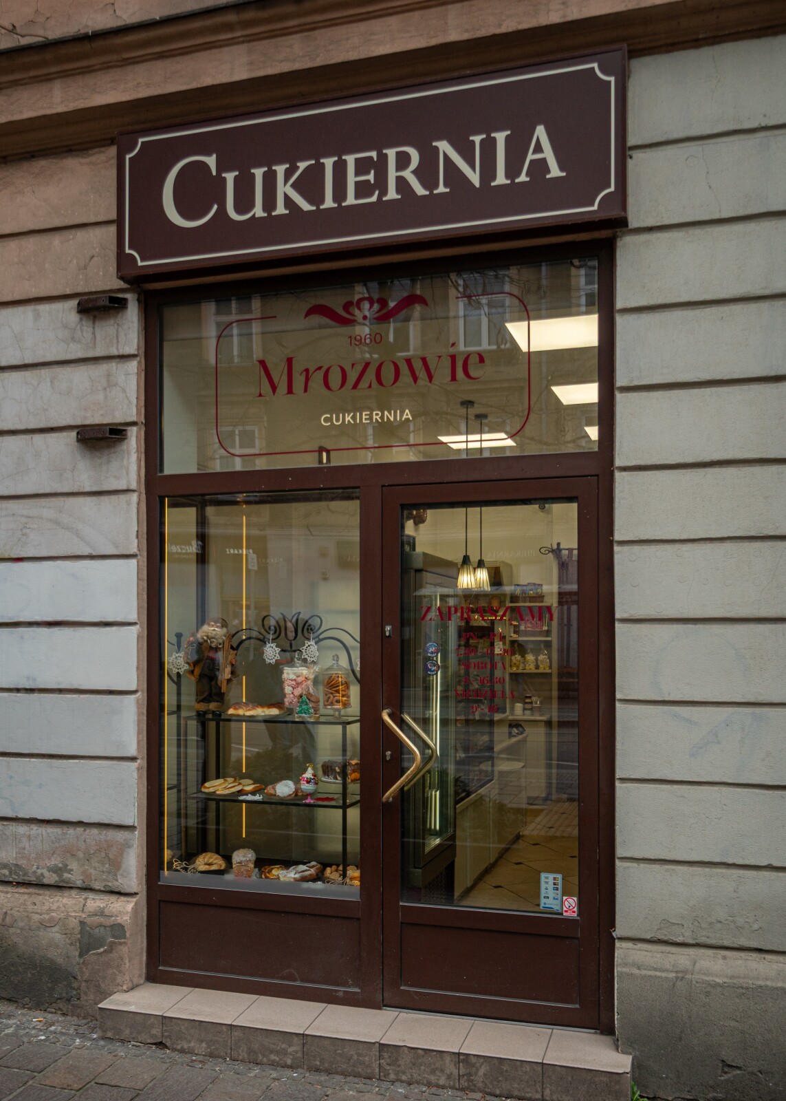 Cukiernia Mrozowie przy placu Wolnica (Krakowska 42) wrosła w krakowski Kazimierz tak bardzo, że wiele osób nie wyobraża sobie bez niej w tej części miasta. Założył ją w 1960 roku Stanisław Kargol, ogromny autorytet i skarbnica wiedzy cukierniczej, przedstawiciel dawnego pokolenia cukierników, którzy korzystali wyłącznie ze sprawdzonych przepisów, a do produkcji wykorzystywali jedynie naturalne produkty. Z czasem dołączył do niego Bronisław Mróz, który poślubiając Marię, krewną Stanisława, stał się członkiem rodziny i spadkobiercą tradycji cukierniczych. Maria, szara eminencja cukierni, dała się poznać jako dobry duch tego miejsca. To właśnie ona wzięła na siebie odpowiedzialność za firmę po śmierci Bronisława. Dla ciągłości istnienia cukierni dołączyli do niej synowie, dotychczas niezwiązani z biznesem. I tak historyk i muzyk stali się kolejnym pokoleniem mistrzów cukierniczych. Niewielka pracownia Mrozowie nie konkuruje z wielką produkcją, ale jej wyroby to jakość, która jest prawdziwą marką. Jej celem jest wybór zdrowych, naturalnych składników: u nich ser jest prawdziwy, śmietana świeża, a jabłka obiera się i kroi ręcznie. Mrozowie wciąż wypiekają ciasta w tradycyjnym piecu z cegły szamotowej, zaprawiają w słojach owoce, a na Wielkanoc w syropach gotują kilogramy bakalii na świątecznego przekładańca.