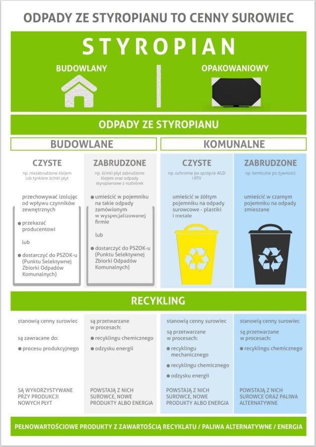 Cennym surowcem wtórnym jest STYROPIAN. Poniżej instrukcja postępowania z odpadami ze styropianu: