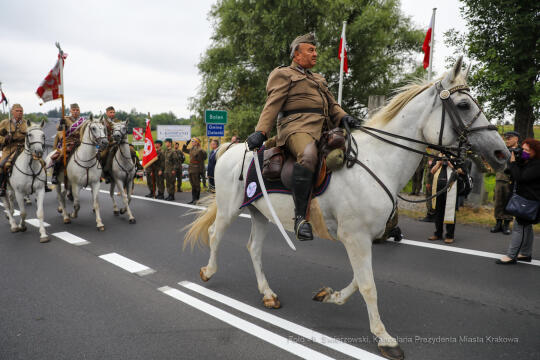 Kadrówka 2020 - Uroczystości pod pomnikiem upamiętniającym obalenie słupów granicznych przez I Kompanię Kadrową - Michałowice