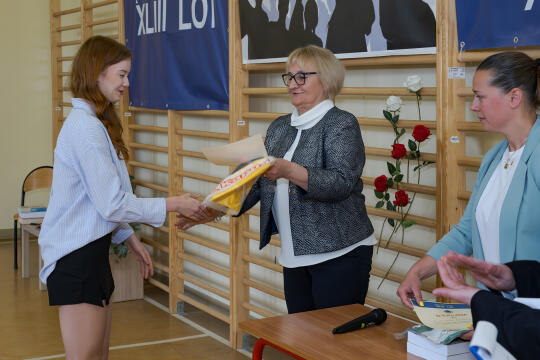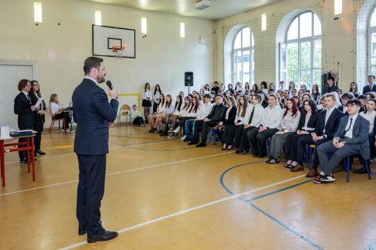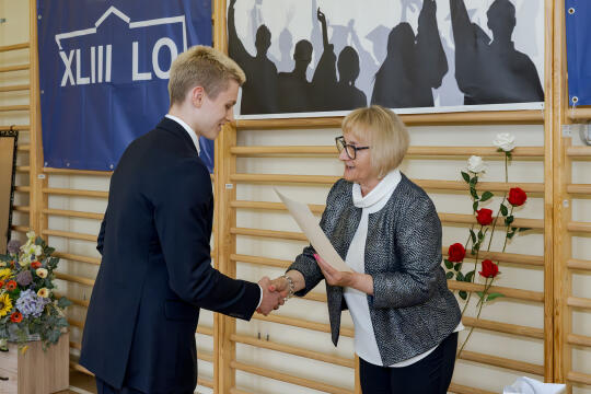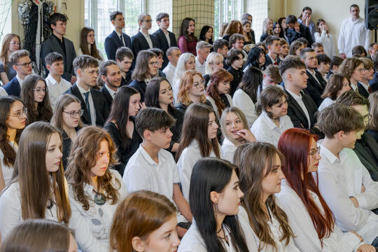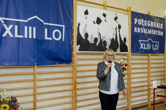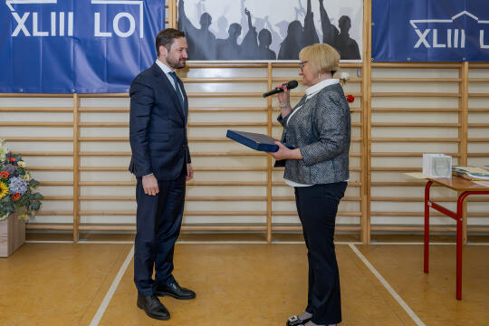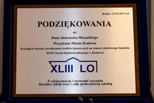 Prezydent Miasta Krakowa Aleksander Miszalski wziął udział w uroczystości pożegnania uczniów klas maturalnych w 43 Liceum Ogólnokształcącym. W trakcie wydarzenia dyrektorka szkoły Bożena Skowronek w imieniu grona nauczycielskiego, uczniów i rodziców podziękowała Prezydentowi za wsparcie dla remontu zabytkowego budynku liceum.