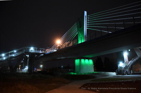 Dzień Wolności Białorusi - Kładka Bernatka i Tauron Arena podświetlone w biało-czerwono-białych, historycznych barwach flagi Białorusi