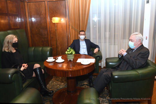 Spotkanie Prezydenta Krakowa Jacka Majchrowskiego z Premierem Mateuszem Morawieckim i Poseł Małgorzatą Wassermann