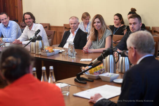Konferencja prasowa dotycząca stanu prac przy budowie Krakowskiego Szybkiego Tramwaju do Górki Narodowej
