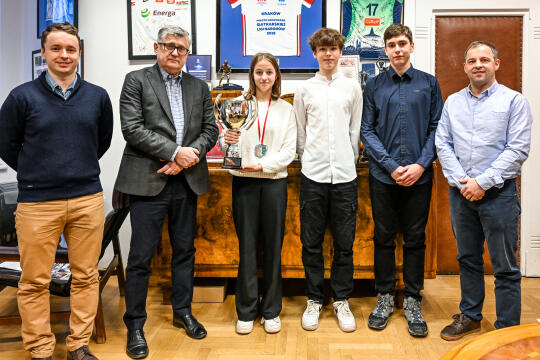 Spotkanie Pełnomocnika Prezydenta Miasta Krakowa ds. Rozwoju Kultury Fizycznej Janusza Kozioła ze srebrnymi medalistami Mistrzostw Polski Młodzików w Badmintonie