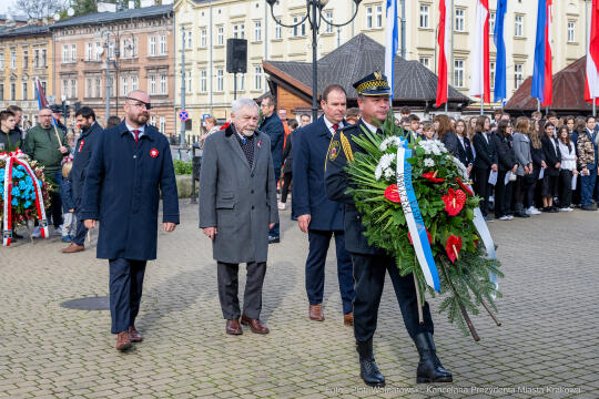 105. rocznica wyzwolenia Krakowa spod władzy zaborczej – złożenie kwiatów pod tablicą pamiątkową na Wieży Ratuszowej