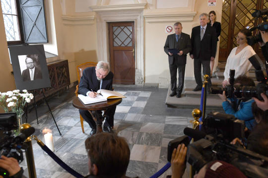 Wpis do księgi kondolencyjnej prezydenta Pawła Adamowicza