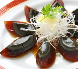Jednym z nich jest pokrycie jaj solonym błotem. Z czasem jaja twardnieją, do białek przenika sól, a żółtka nabierają złocistej barwy. Tak przygotowane jaja zestawia się z delikatnymi potrawami, aby nie przesadzić z solą. Smak, choć ciekawy, ma wielu wrogów nawet wśród Chińczyków.