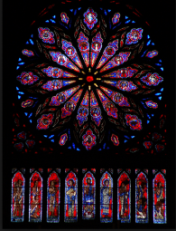W centrum fasady zachodniej wzrok przykuwa ogromna ozdobna rozeta. Choć wpasowuje się ona doskonale w tło, to faktycznie jest dziełem stosunkowo młodym. Powstała w 1930 r., w dziewięćsetną rocznicę śmierci św. Olafa. Powstała dzięki inicjatywie i zbiórkom pieniężnym norweskich kobiet. Okrągłe okno o średnicy ponad 8 metrów składa się z 10 000 kolorowych elementów, które symbolizują Chrystusa oraz Sąd Ostateczny. Dominuje kolor niebieski i czerwony, w centrum znajduje się postać Chrystusa w otoczeniu szesnastu aniołów.