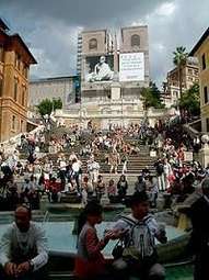 Schody zwane Hiszpańskimi są dziełem architektów Francesco de Sanctis i Alessandro Specchi i znajdują się przy placu noszącym tą samą nazwę - Piazza di Spagna czyli Plac Hiszpański. Schody oraz znajdujący się na ich szczycie XVI-wieczny kościół Trinita dei Monti (kościół św. Trójcy), zbudowany według projektu Carla Maderny, zostały sfinansowane przez rząd francuski. Mimo to nie zyskały nazwy francuskiej, swą nazwę zawdzięczają natomiast lokalizacji ambasady hiszpańskiej. Zostały ukończone w 1726 r. Mają 138 stopni i uznawane są za jedne z najdłuższych i najszerszych schodów w Europie. U podnóża Schodów Hiszpańskich ulokowana jest niewielka fontanna Barcaccia, co w języku włoskim oznacza małą łódkę, a jej nazwa ma upamiętniać powódź, która miała miejsce w 1598 r., kiedy to wody Tybru wyrzuciły w tym miejscu łódkę. Do dziś Schody Hiszpańskie należą do miejsc tłumnie odwiedzanych przez turystów. Słyną z rokrocznie organizowanych na nich pokazów mody. Wiosną zdobi je kwiatowa dekoracja ustawiana z okazji festiwalu kwiatów, a zimą, w okresie Bożego Narodzenia, na tarasie schodów ustawiana jest szopka. Uwaga! Istnieje przesąd, zgodnie z którym na tych schodach nie należy jeść.