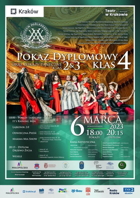 6 marca 2023 r. w Teatrze im. Juliusza Słowackiego w Krakowie odbędzie się pokaz dyplomowy klas 4 oraz pokazy taneczne klas 2 i 3 XXX Liceum Ogólnokształcącego w Krakowie. Wydarzenie patronatem objął Rafał Komarewicz Przewodniczy Rady Miasta Krakowa.