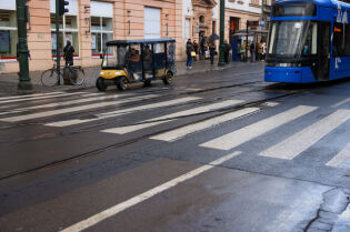 Budynek na Dębnikach, tramwaj na Azory, dokarmianie ptaków
