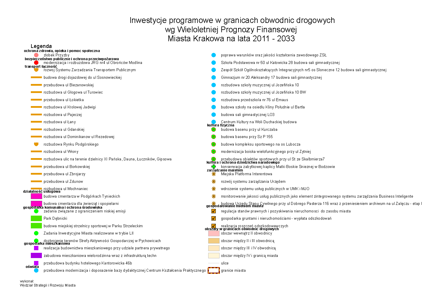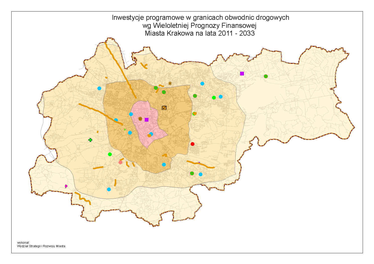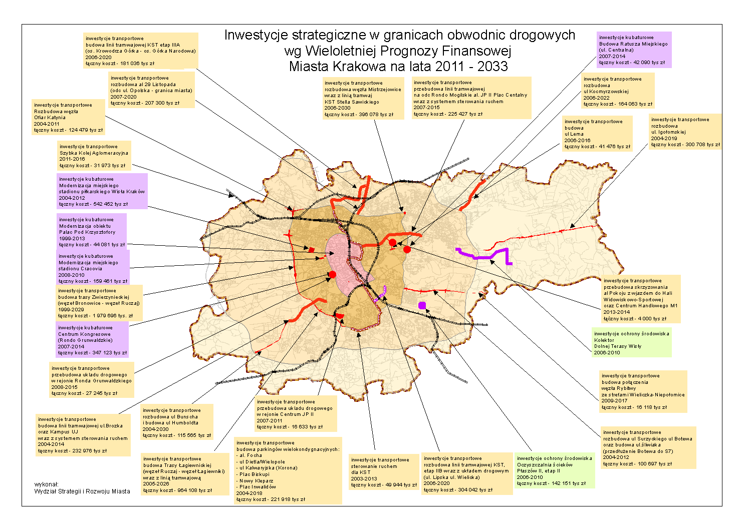Miasta Krakowa na lata 2011 - 2033 - inwestycje programowe w granicach obwodnic drogowych wg Wieloletniej Prognozy Finansowej