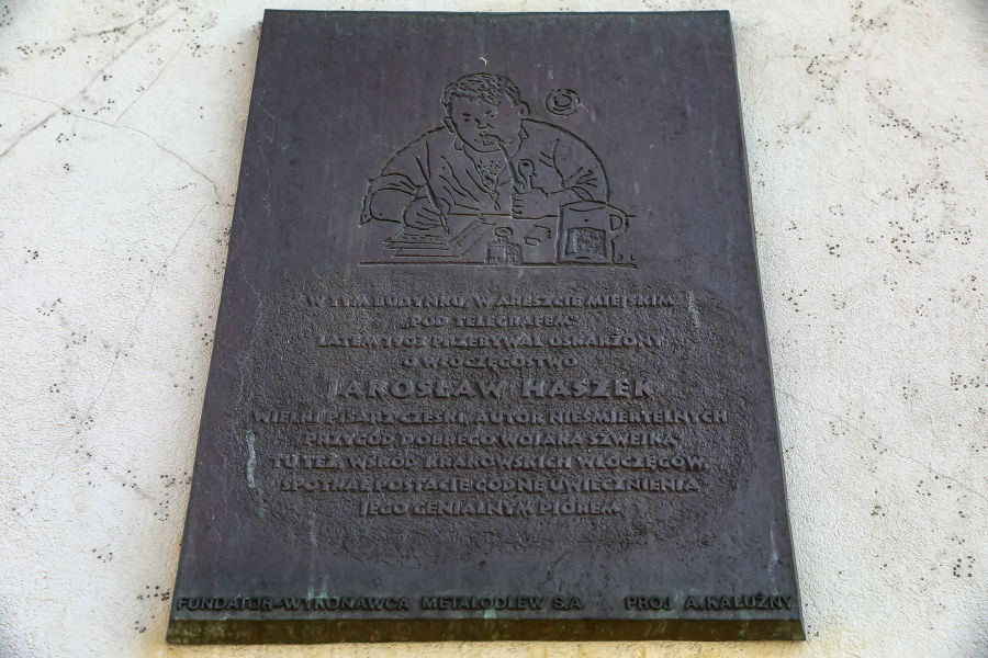Tak więc zupełnie zrozumiałe jest, że mamy pod Wawelem tablicę upamiętniającą Haszkowy pobyt w policyjnym areszcie Pod Telegrafem. To przymusowe zatrzymanie, najprawdopodobniej pod zarzutem włóczęgostwa, miało miejsce pod koniec lipca 1903 r. Pobyt w areszcie trwał zresztą bardzo krótko, bo tylko kilka dni. Krakowska policja, mająca skądinąd bardzo dobrą opinię nie tylko we Lwowie, ale nawet w stołecznym Wiedniu, wykazała się w tym przypadku wielką wyrozumiałością. Zwolniła z aresztu rzekomego włóczęgę, nie czekając na odpowiedź praskiej policji, do której zwróciła się z pytaniem o tożsamość osobnika podającego się za absolwenta praskiej Akademii Handlowej oraz pracownika banku Slavia. Notabene odpowiedź z Pragi przyszła dopiero na początku września, co nie najlepiej świadczy o szybkości działania tamtejszych stróżów prawa. Warto też pamiętać, że pobyt w krakowskim areszcie zainspirował Haszka do napisania całkiem sympatycznego opowiadania.